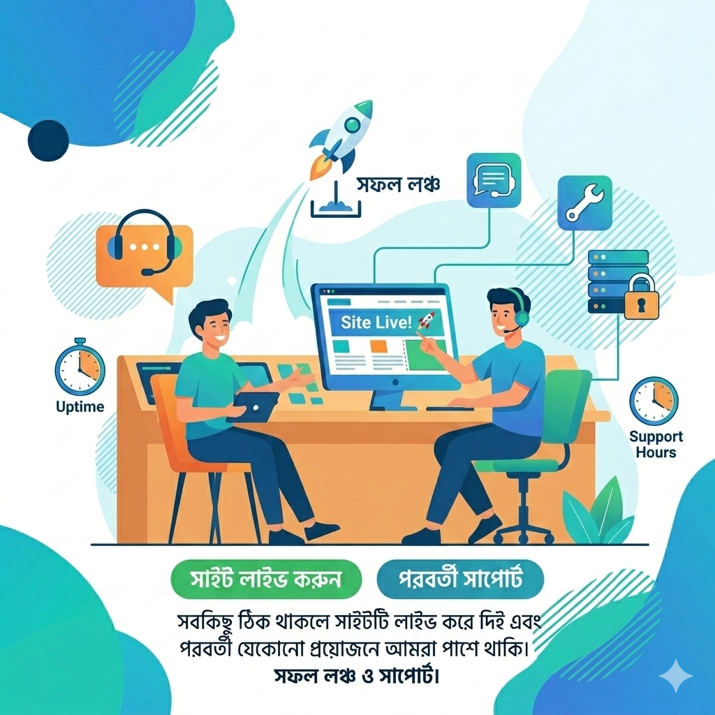 সবকিছু ঠিক থাকলে সাইটটি লাইভ করে দিই এবং পরবর্তী যেকোনো প্রয়োজনে আমরা পাশে থাকি।